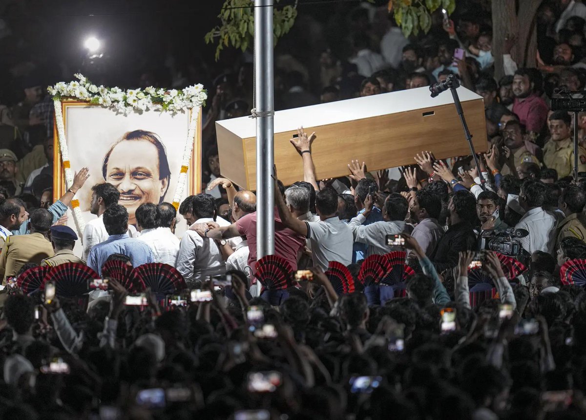 Earlier in the day, a massive funeral procession was taken out from Pawar’s ancestral residence at Katewadi to Vidya Pratishthan Ground, with thousands of NCP supporters, local residents, and party cadres lining the streets in silent tribute. The atmosphere was heavy with grief as floral tributes showered the cortege and emotional slogans filled the air.