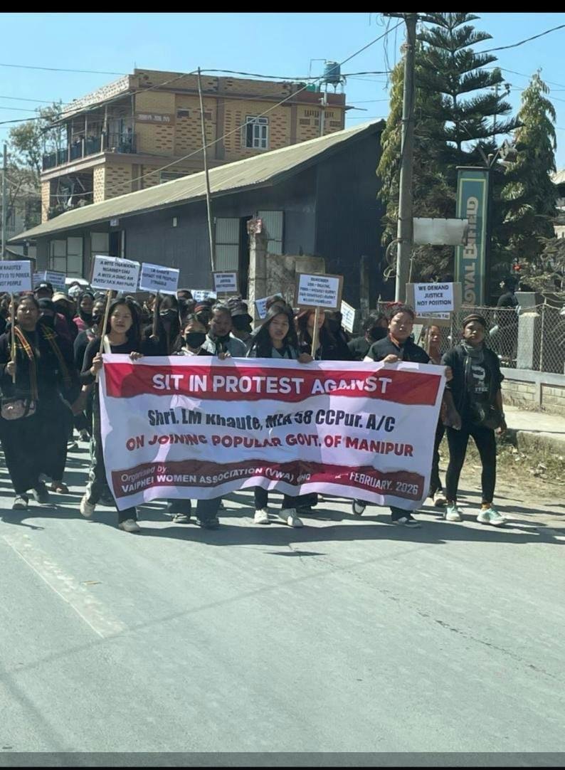February 12, 2026 : Hundreds of Vaiphei women protesting against local MLA L.M. Khaute were reportedly assaulted by masked men alleged to be members of the Zomi-dominated Central Village Defence Force (CVDF) during a demonstration in Churachandpur town today. The protesters were rallying against Khaute’s decision to join the newly formed Manipur government led by Chief Minister Yumnam Khemchand Singh, which they view as a betrayal of the community’s interests.