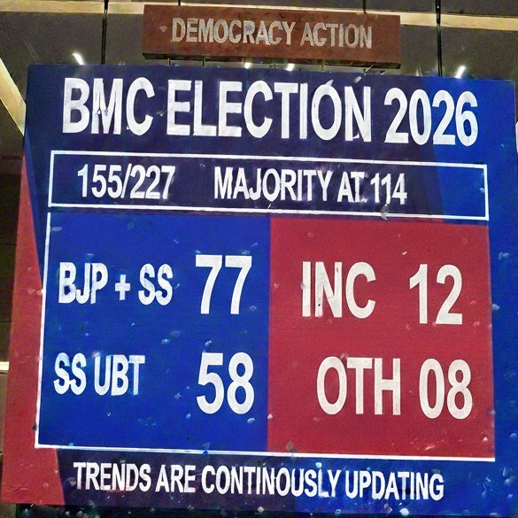 If the early trends hold, the outcome would mark a significant shift from the 2017 elections, when the undivided Shiv Sena won 84 seats and the BJP secured 82, allowing the Sena to retain control of the BMC.