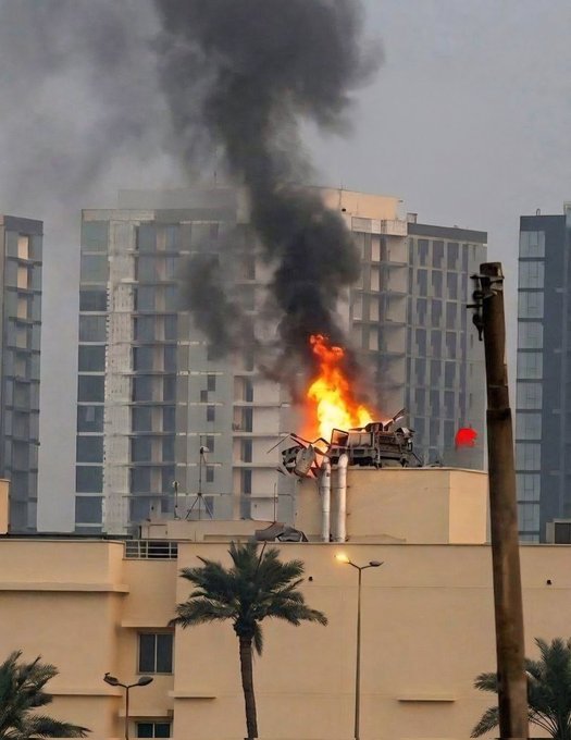 Air defence systems, including the embassy’s C-RAM interceptors, were activated as sirens echoed across the International Zone. While most incoming projectiles were reportedly intercepted, at least one struck داخل the compound, triggering fire and smoke.