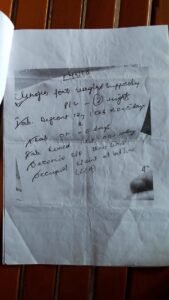 A fourth handwritten medical prescription lists medications commonly used for pain management, infection control, gastric protection, and trauma-related care, including antibiotics and supportive drugs. There is no indication of treatment for overdose, poisoning, or substance dependency.