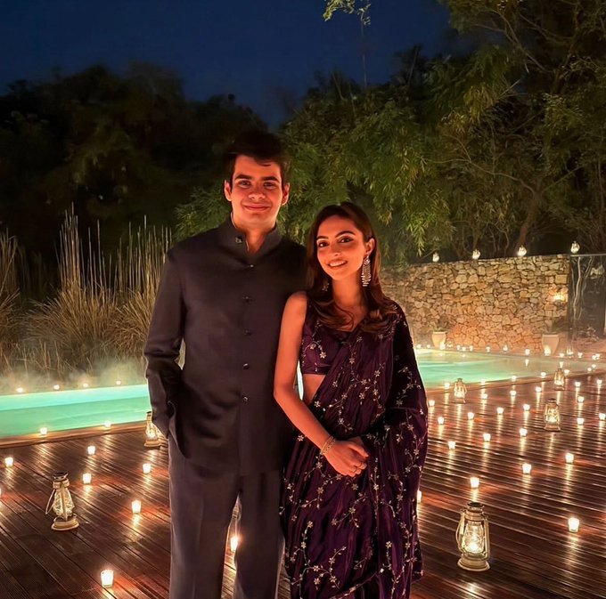 The private ceremony took place in Ranthambore. One of the photographs shows the couple during the evening celebration, dressed in traditional Indian attire. Raihan is seen wearing a dark sherwani, while Aviva opted for an embellished sari. Another image shared by the couple is a nostalgic throwback from their childhood, showing them dressed in traditional outfits—Raihan in a white kurta-pyjama and Aviva in a mustard-yellow suit.