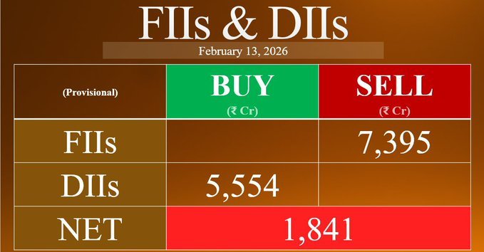 The Indian equity markets faced significant pressure today, February 13, 2026, as Foreign Institutional Investors (FIIs) offloaded shares worth a massive ₹7,395.41 crores in the cash segment. This aggressive selling triggered a sharp decline in benchmark indices, with the Nifty… pic.twitter.com/issdtoDPDa