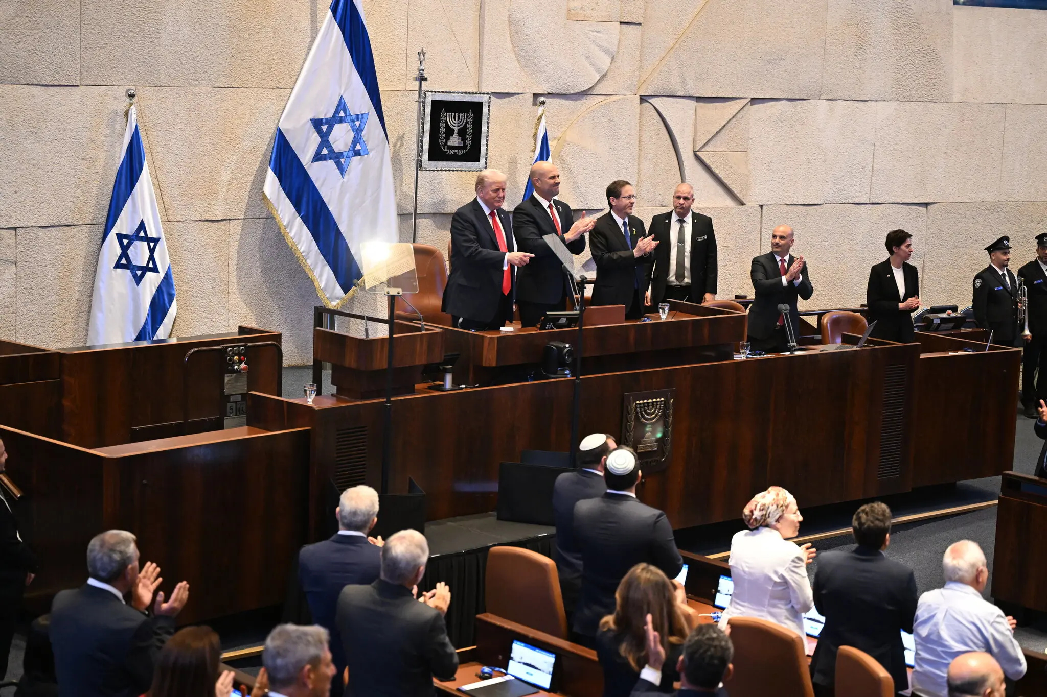 Touching down at Ben Gurion International Airport at 9:20 a.m. local time, Trump was greeted by Israeli President Isaac Herzog and Prime Minister Benjamin Netanyahu in a subdued ceremony. He immediately traveled via motorcade to Jerusalem, meeting privately with Netanyahu and the freed hostages’ families before entering the Knesset chamber.